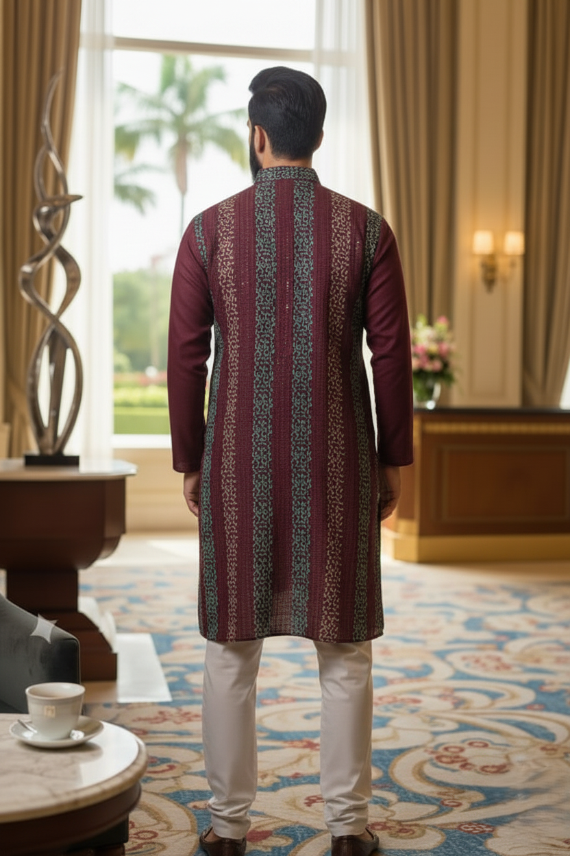 Red Mirza Kurta & Pajama Set