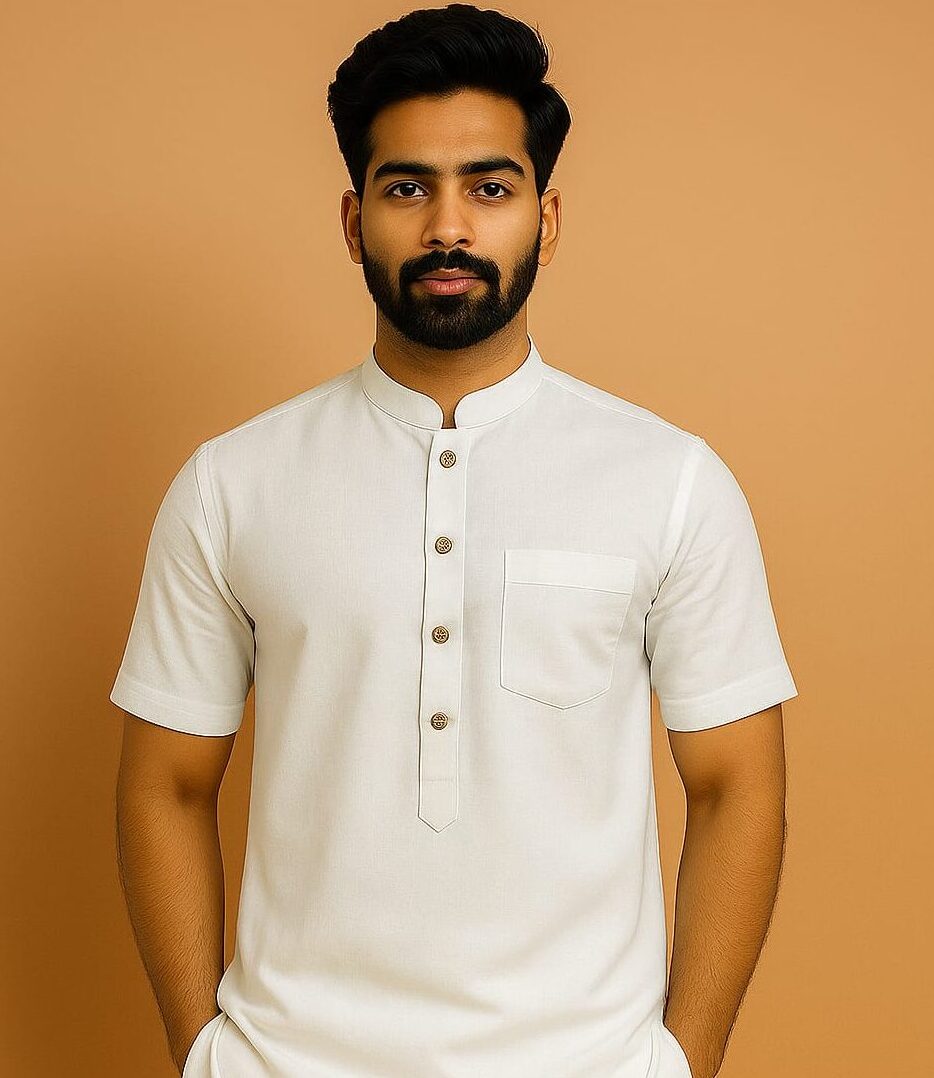 The soft, breathable fabric feels great on the skin and keeps you fresh all day long. With its neat mandarin collar, button-down front, and relaxed fit, it’s perfect for both laid-back days and festive evenings. Every stitch reflects Patel Sahab’s eye for detail and love for classic Indian design.